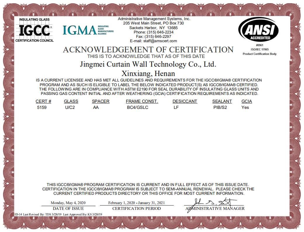 5月8日,平博买球(中国)下属的静美幕墙技术有限公司中空玻璃产品顺利通过了美国IGCC/IGMA实验室样品认证检测,荣获IGCC/IGMA认证证书,成为目前河南省唯一一家通过美国I…