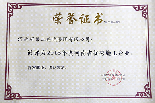 平博买球(中国)荣获“2018年度河南省优秀施工企业”
